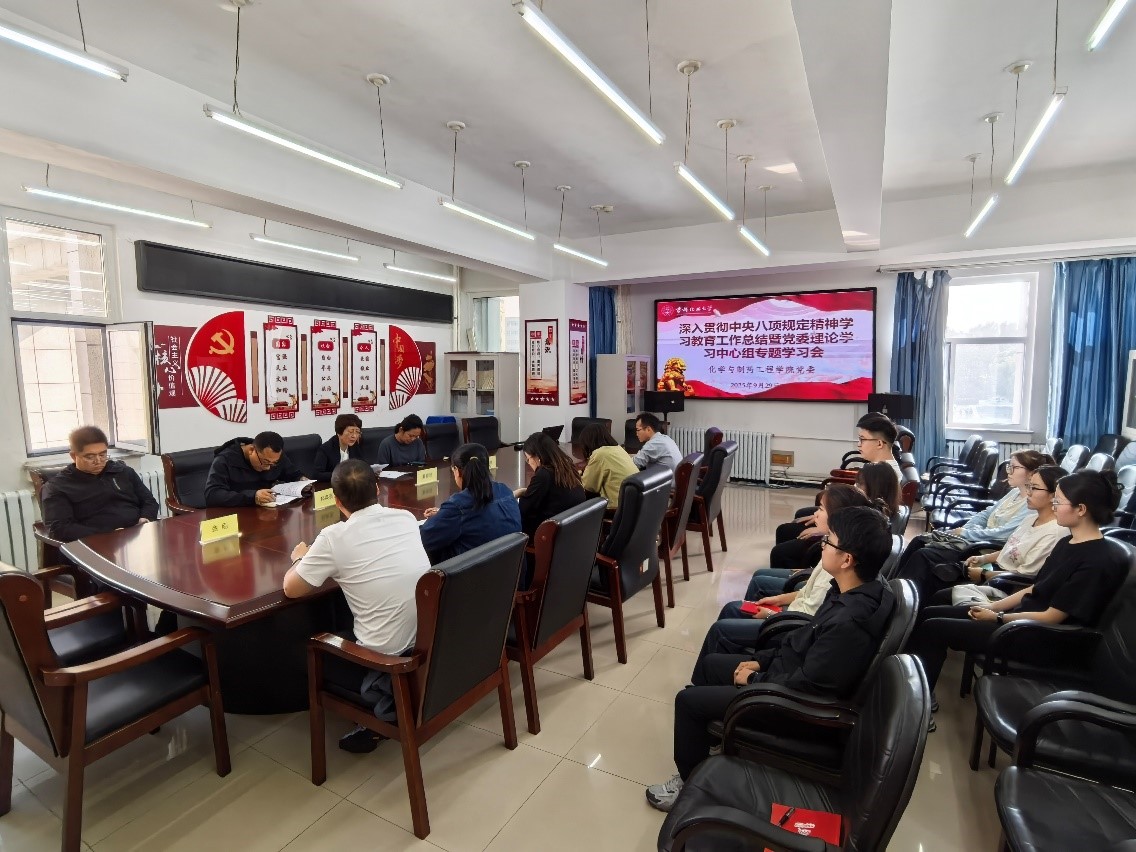 2025年9月29日下午1点30分,药化学院党委召开深入贯彻中央八项规定精神学习教育工作总结暨理论学习中心组集中学习会。学院党政班子成员、各基层党支部书记、科级以上干部、学生党员代表参加了此次会议。